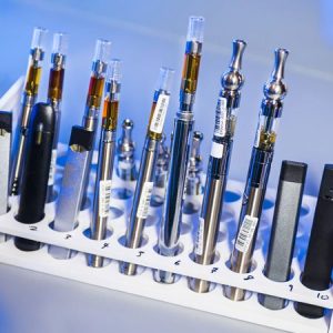 1. Nicotine vaping products (e-cigarettes): These products allow the user to inhale nicotine in a vapour which contains no tar or carbon monoxide. All vaping products have three basic elements: the battery, which heats up the coil or the atomiser, which turns the flavoured liquid into a vapour to be inhaled. Most e-liquids contain four ingredients: vegetable glycerin (VG) which provides the vapour, propylene glycol (PG) which carries the flavour (although PG-free liquids are available as some people are allergic to this ingredient), nicotine, and flavouring.